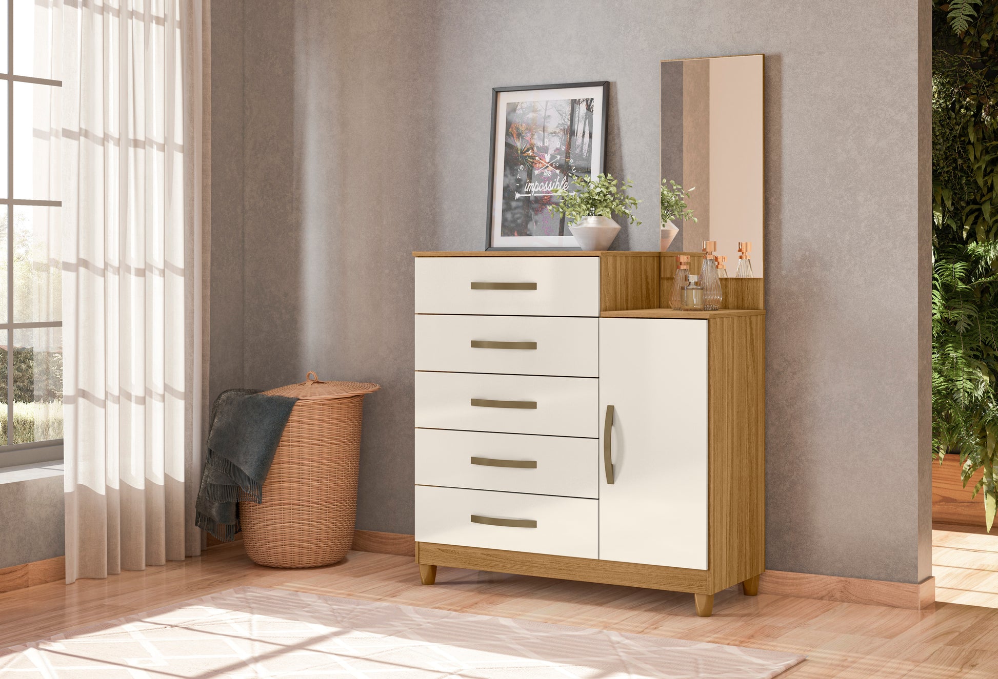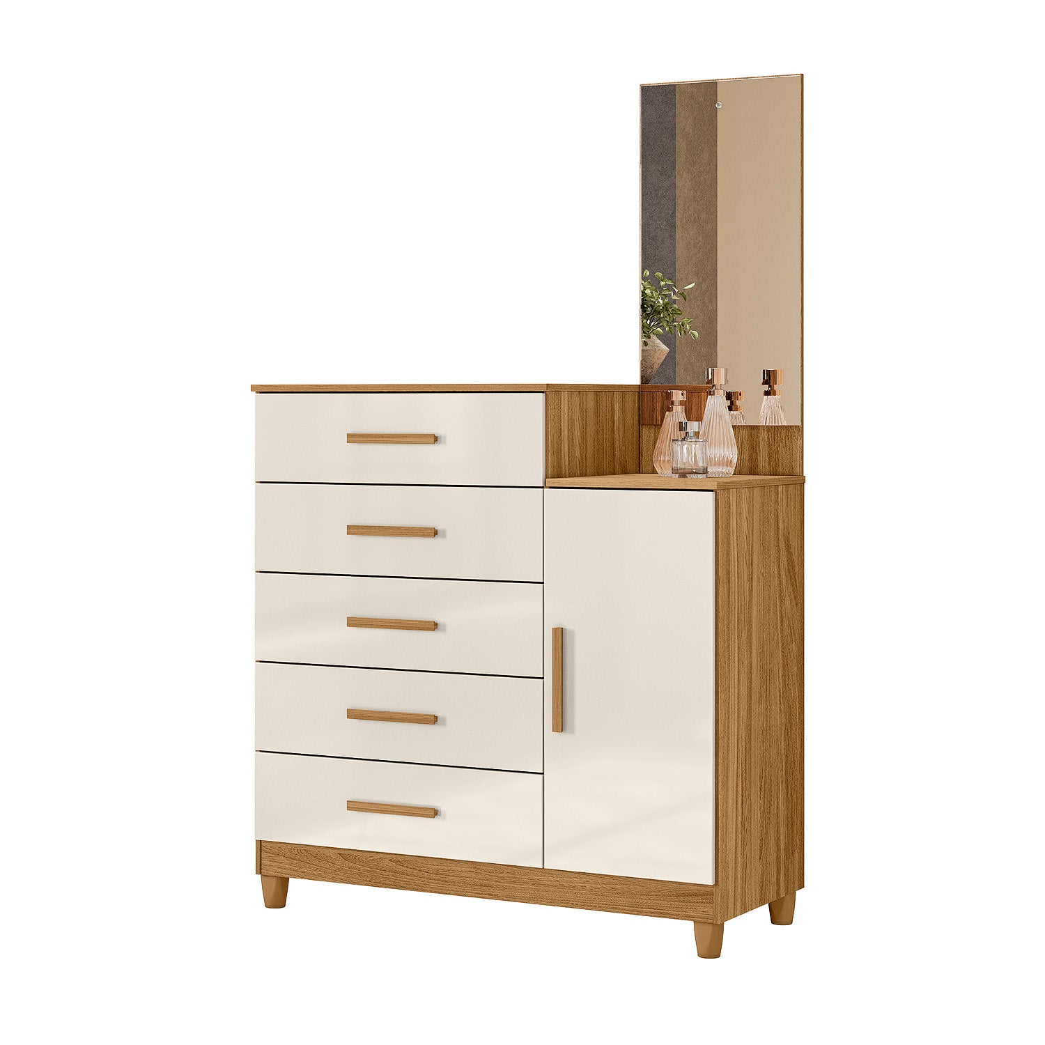 Cómoda modelo Lisboa de 5 cajones, 1 puerta y con espejo