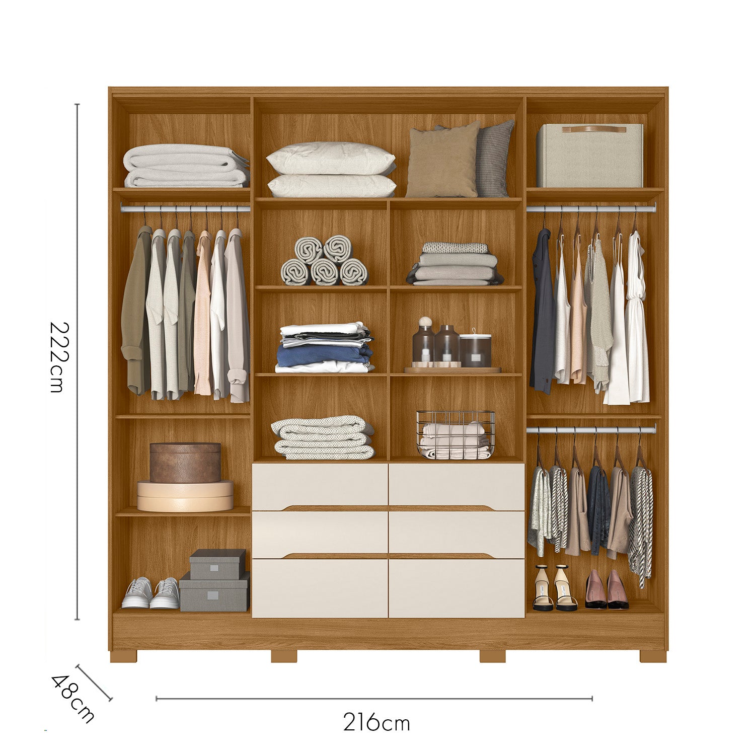 Alto: 222 cm - Ancho: 216 cm - Profundidad: 48 cm