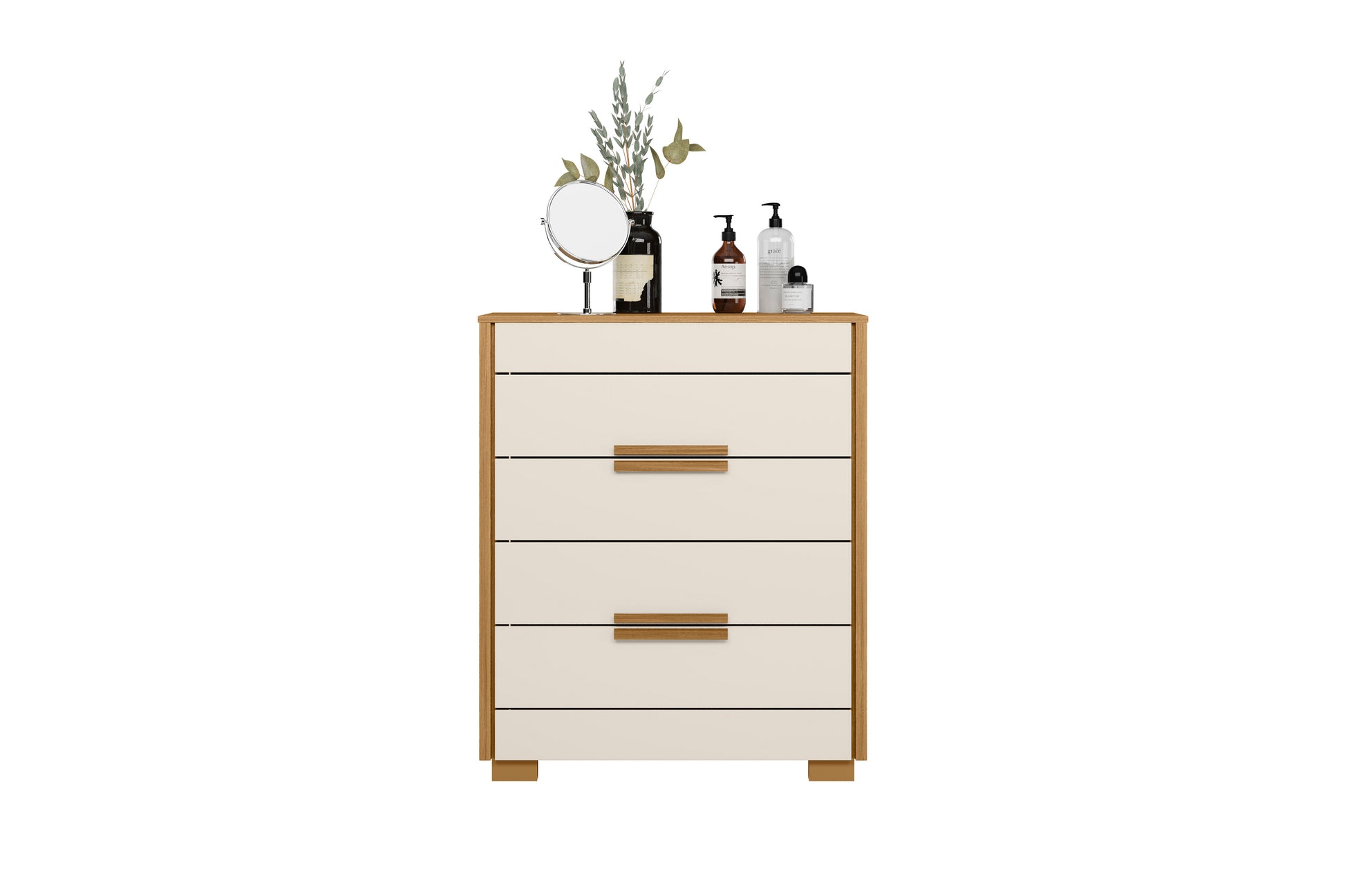 Cómoda Dhara color Café con Blanco crema ,4 cajones rieles metálicos telescópicos, Bisagras metalicas,4 Patas, excelente complemento para tu habitación.