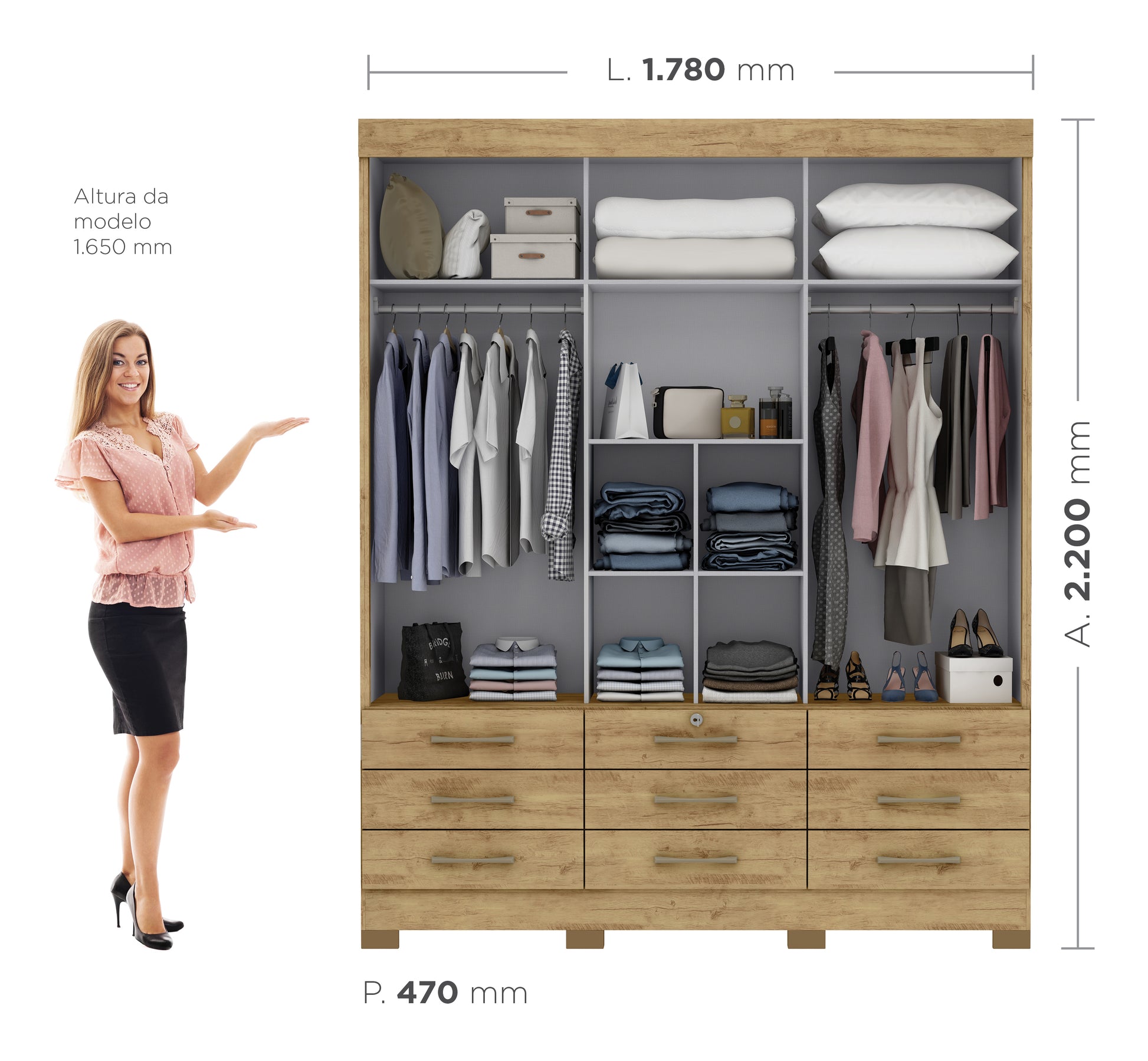 Alto: 220 cm - Ancho: 178 cm - Profundidad: 47 cm
