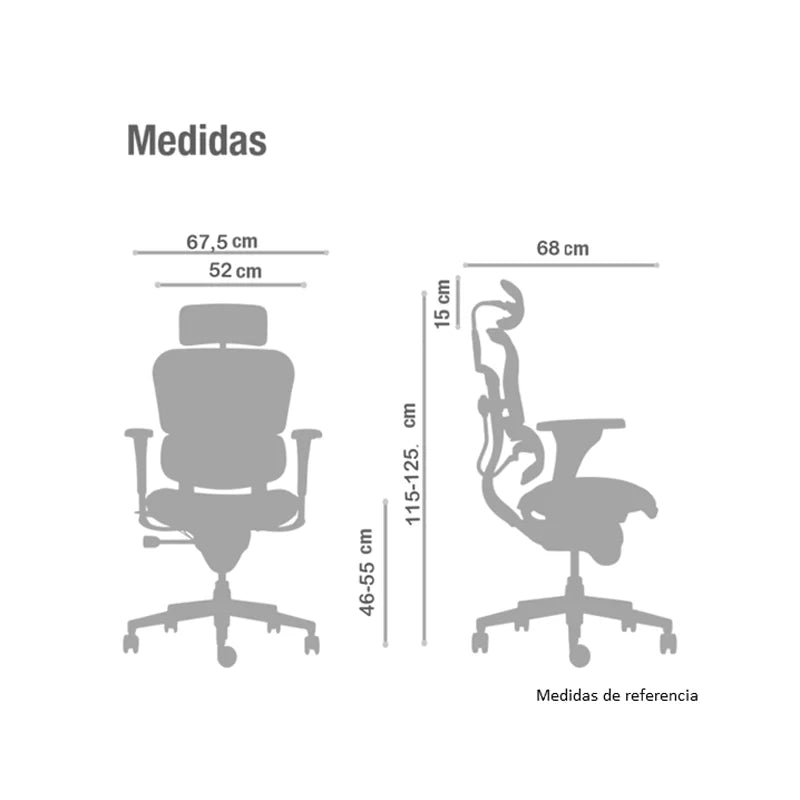 Alto Silla : 115-125 cm Alto Asiento: 46-55 cm